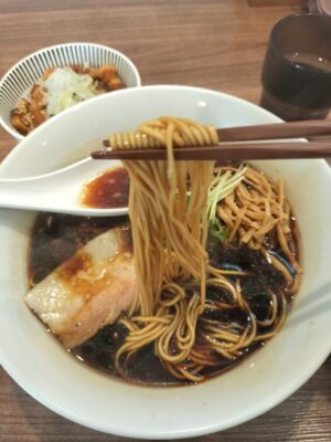 スープはやや胡椒が効きすぎかなと思いましたが、漆黒ラーメンとはそういうものなのでしょう。